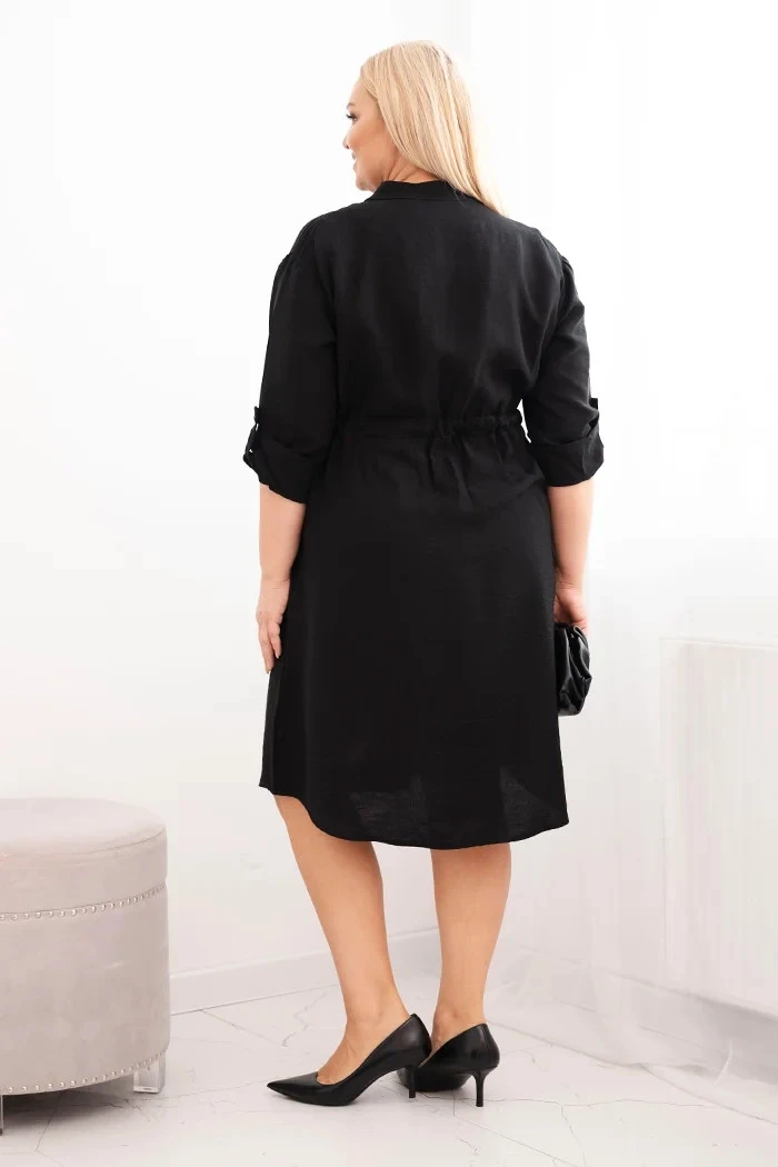 Dámské šaty z viskózy Plus Size s knoflíky a vázáním v pase černá