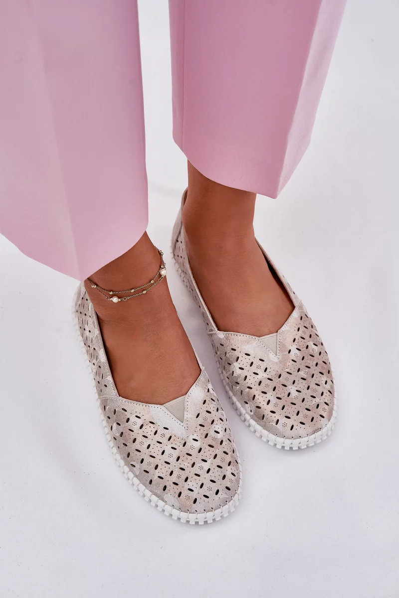 Dámské semišové ažurové polobotky Chulieta – zlatо/šedé