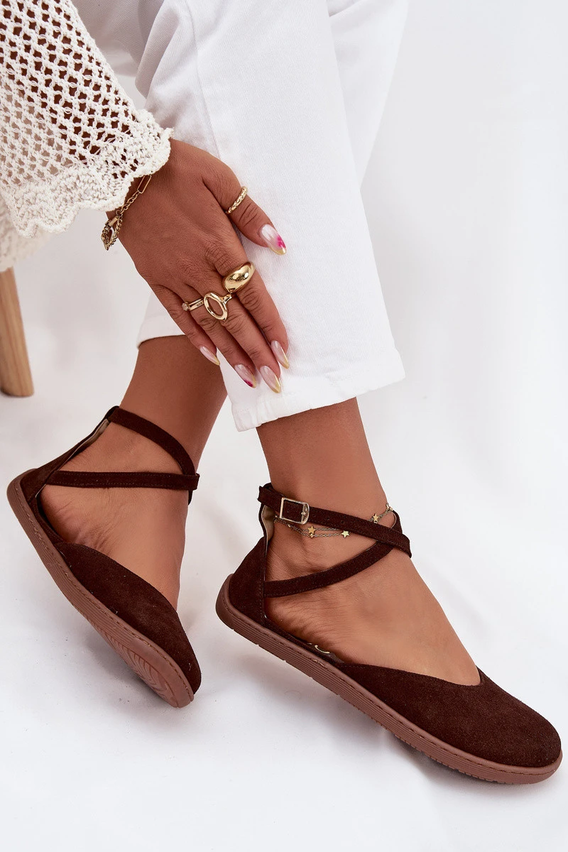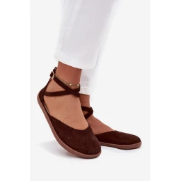 Dámské semišové barefoot baleríny s pásky Zazoo – čokoládové
