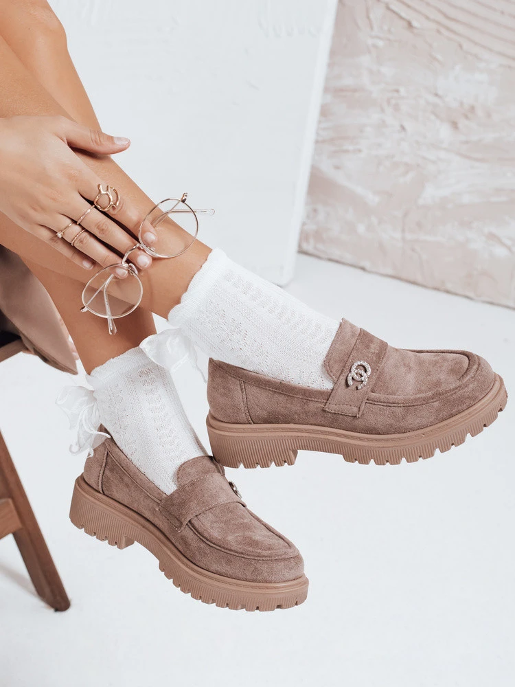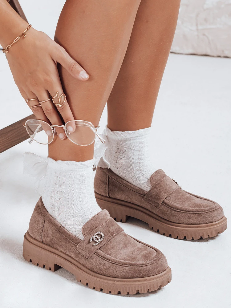 Mokasyny damskie zamszowe beżowe Dstreet ZY1128