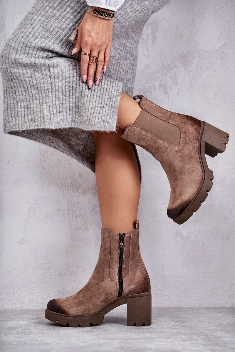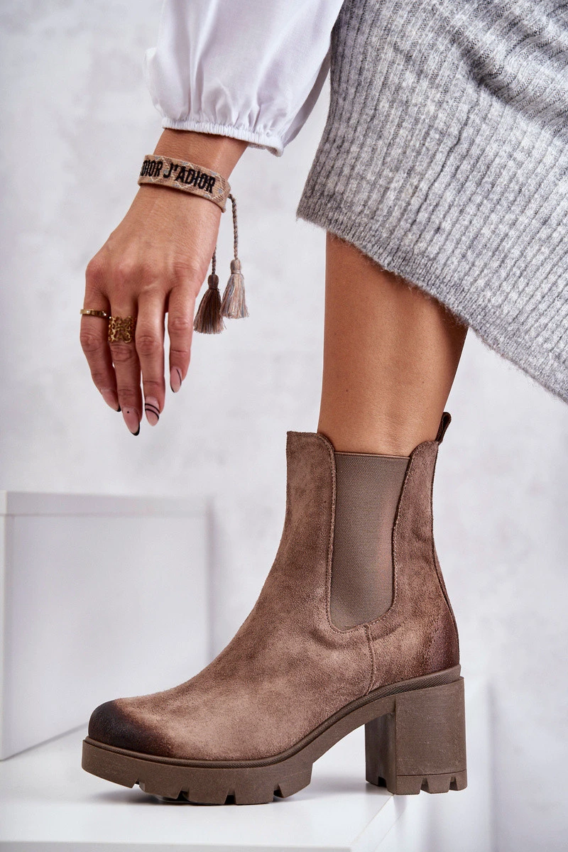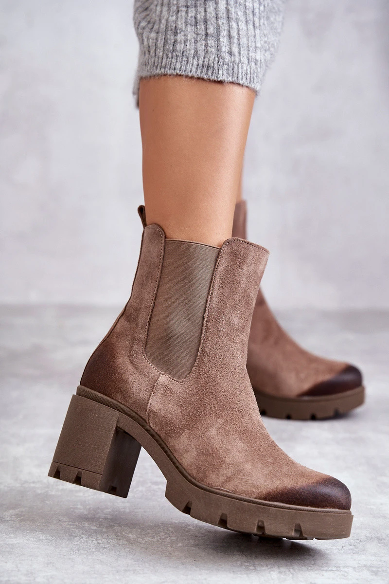 Dámské semišové boty na platformě Béžove model 21598697 - Boto