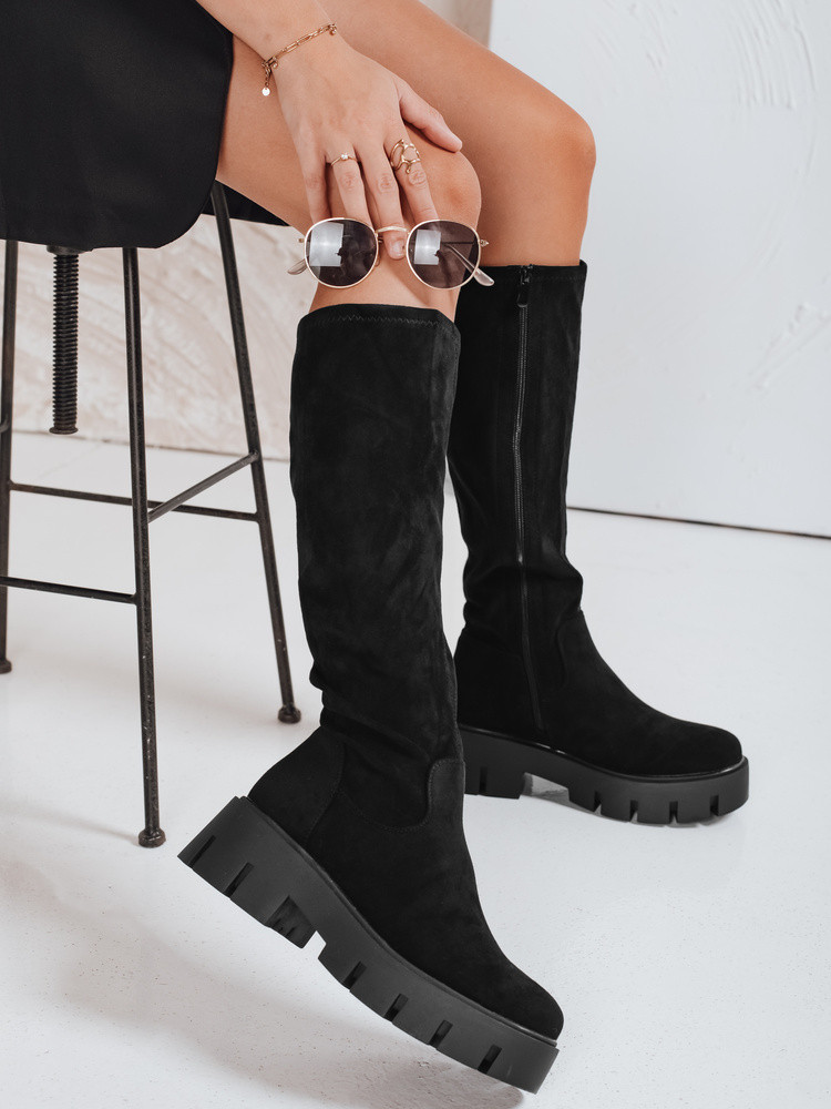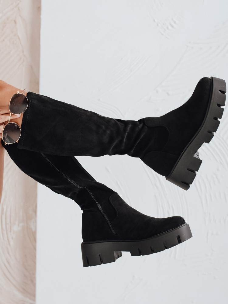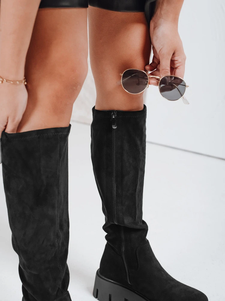 Dámské semišové kozačky na platformě černé Dstreet ZY1103