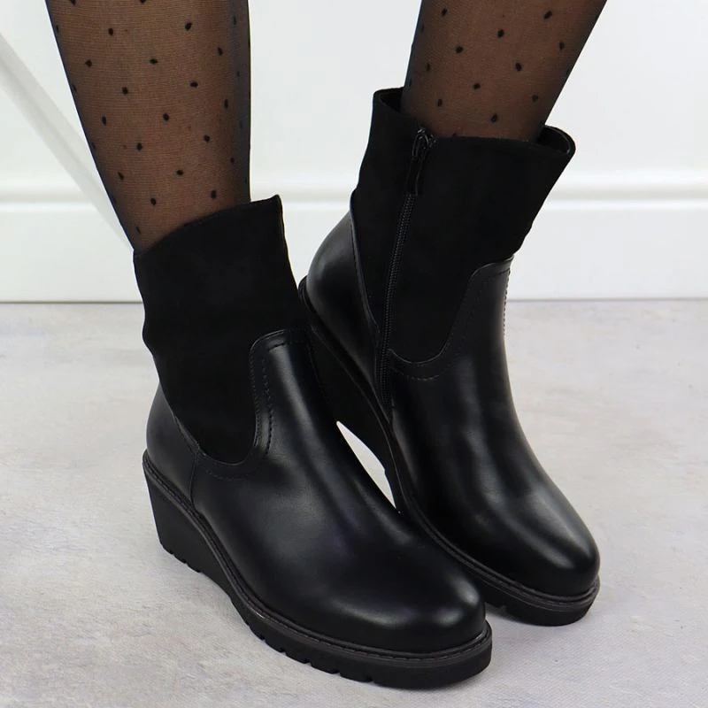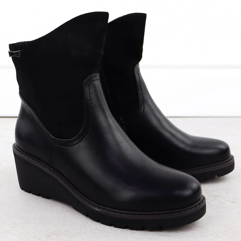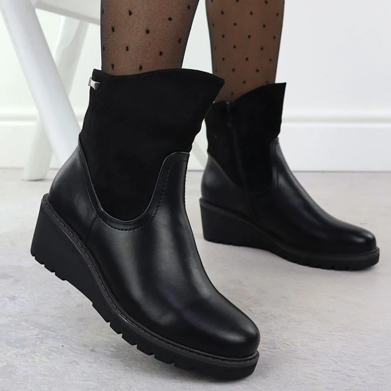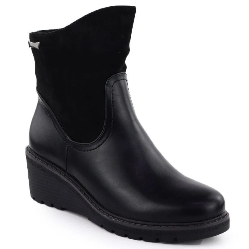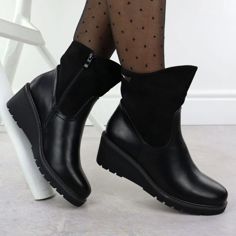 Dámské semišové boty na podpatku černé M.Daszynski model 21905643 - M. Daszyński
