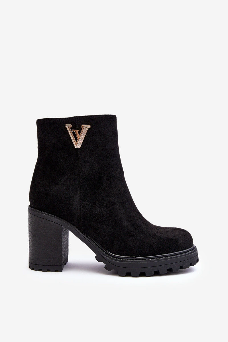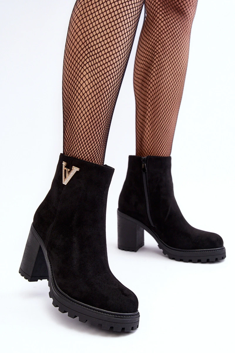 Dámské semišové boty na sloupku s ozdobou černé Strong