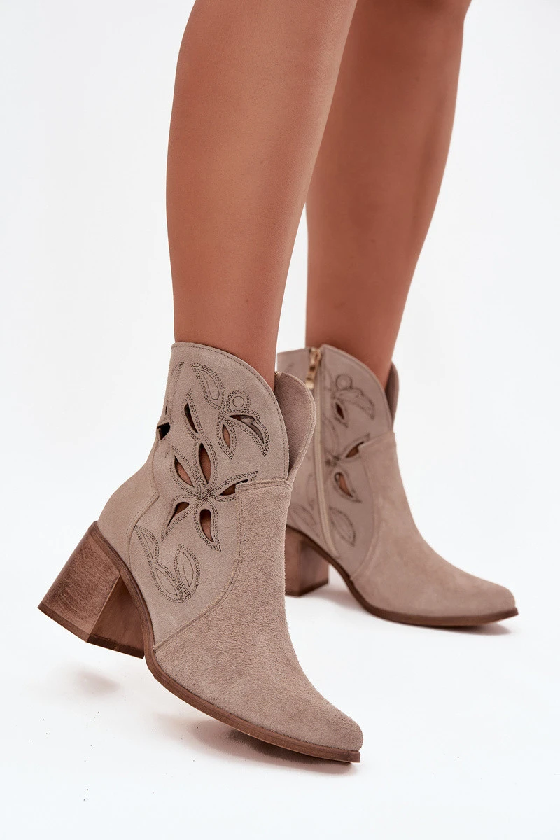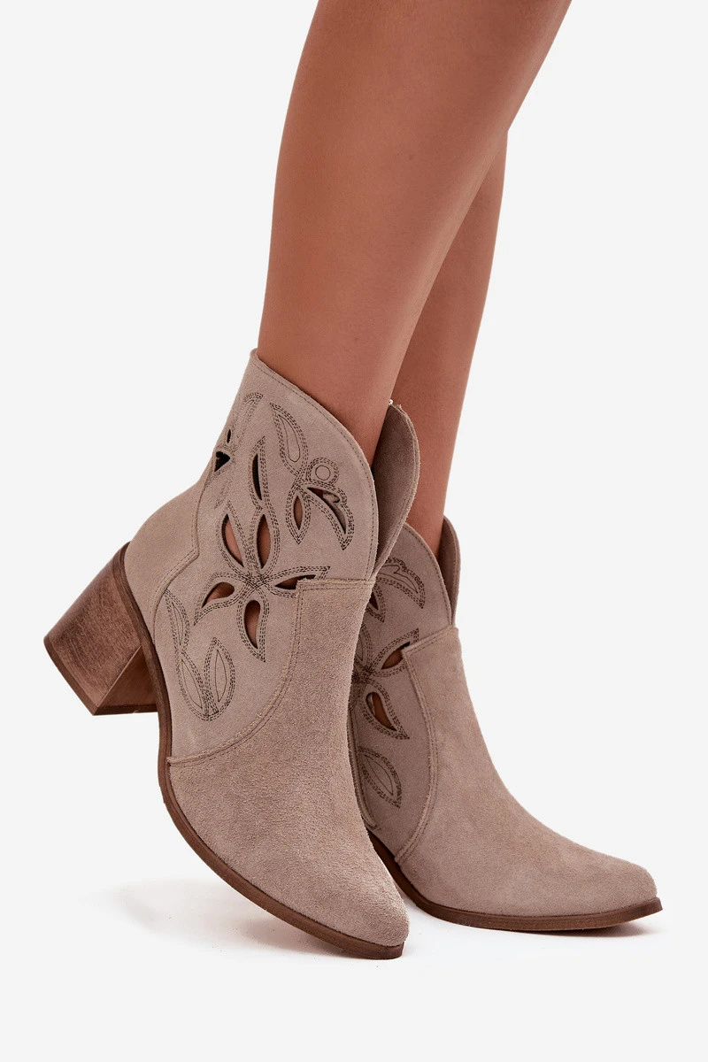 Dámské semišové boty s otvory na podpatku Zazoo 3690 béžové