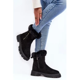Dámské semišové kotníkové boty s kožíškem, černá Hasiva