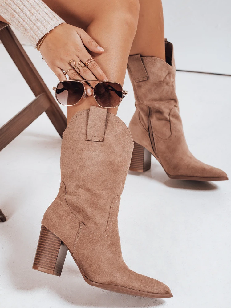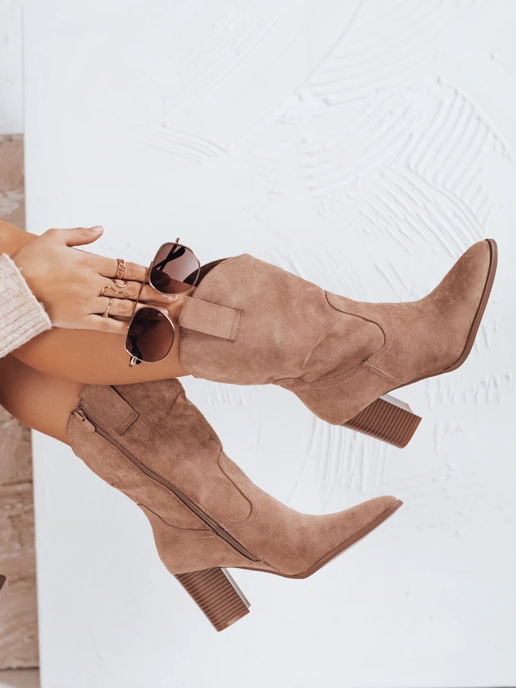 Dámské semišové kovbojské boty ZY1195 beige