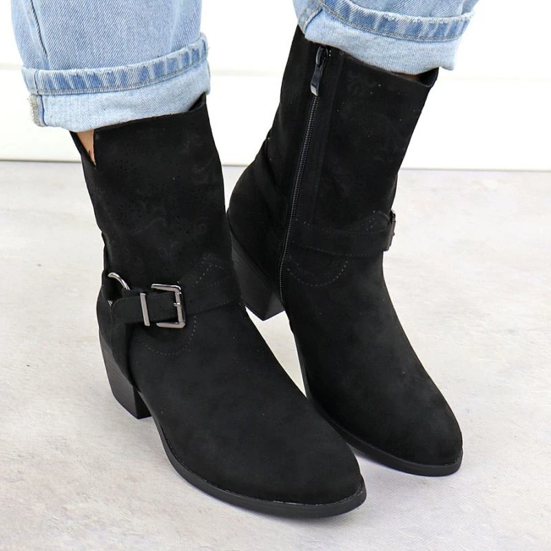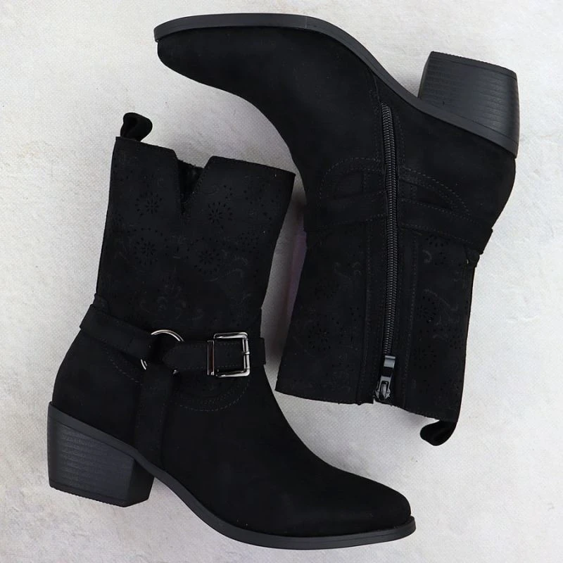 Dámské semišové kovbojské boty černé M.Daszynski model 21905629 - M. Daszyński