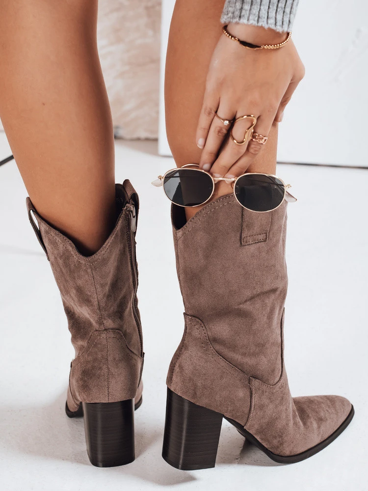 Dámské semišové kovbojské boty hnědé Dstreet model 21993402 - FashionStreet