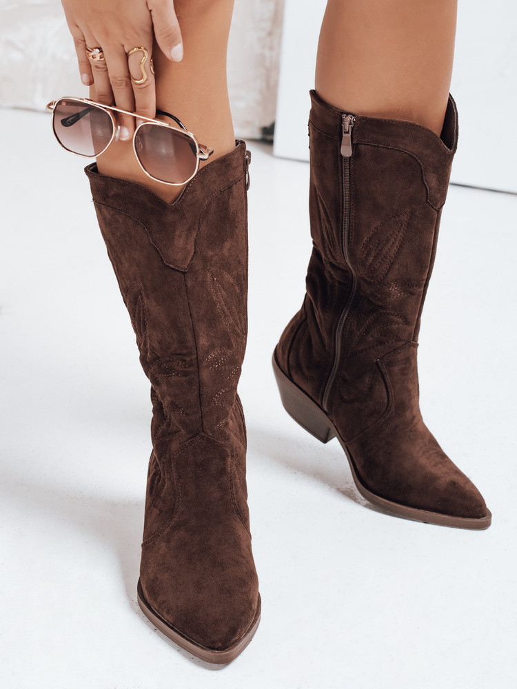 Dámské semišové kovbojské boty hnědé Dstreet ZY1160