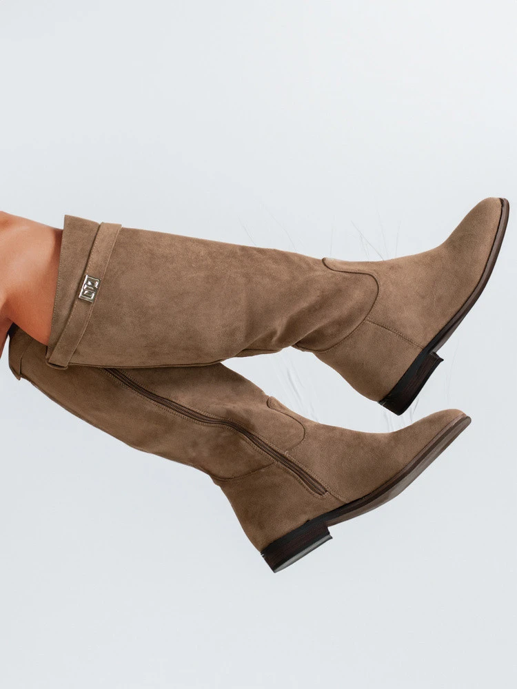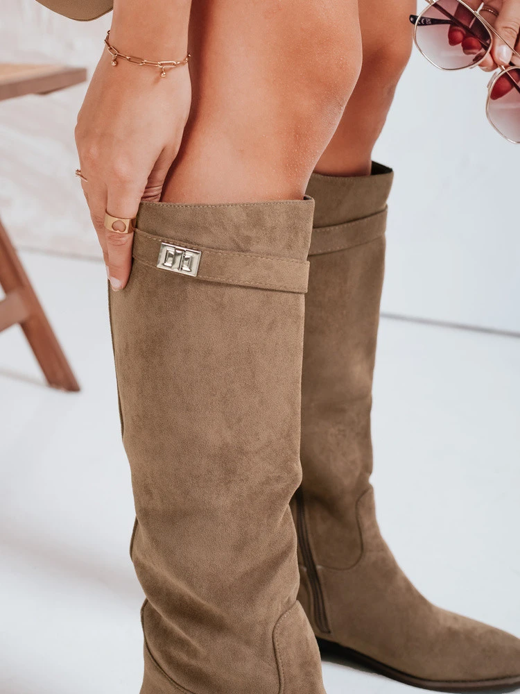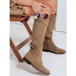Dámské semišové kozačky na nízkém podpatku béžové Dstreet model 21992256 - FashionStreet