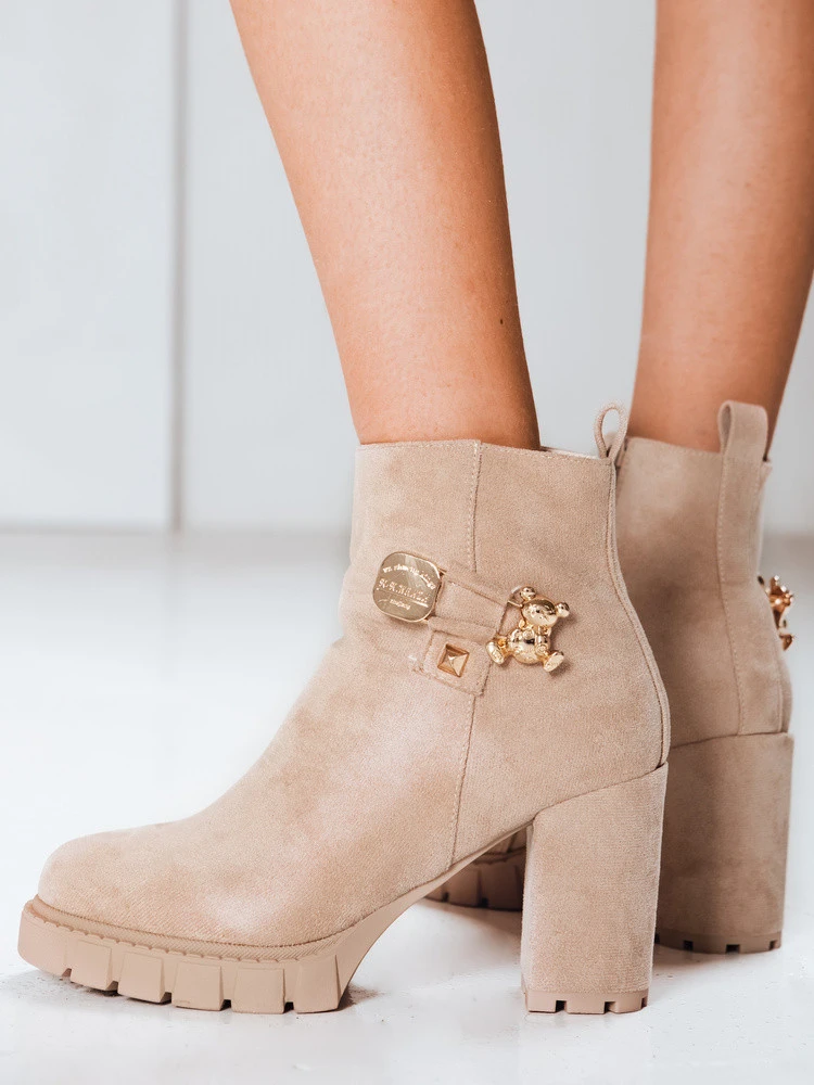 Dámské semišové kozačky na podpatku béžové FashionStreet ZY1265
