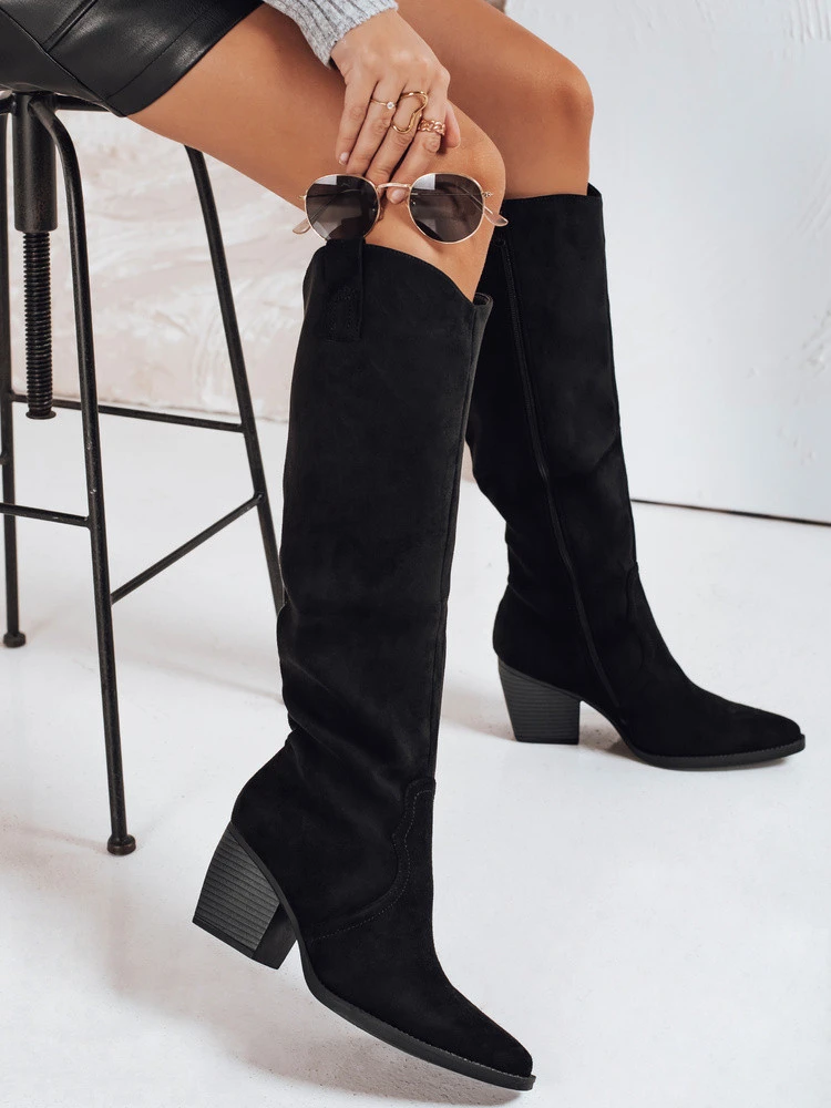 Dámské semišové kozačky na podpatku černé Dstreet ZY1197