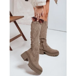 Dámské semišové kozačky na silné podrážce béžové Dstreet ZY1167