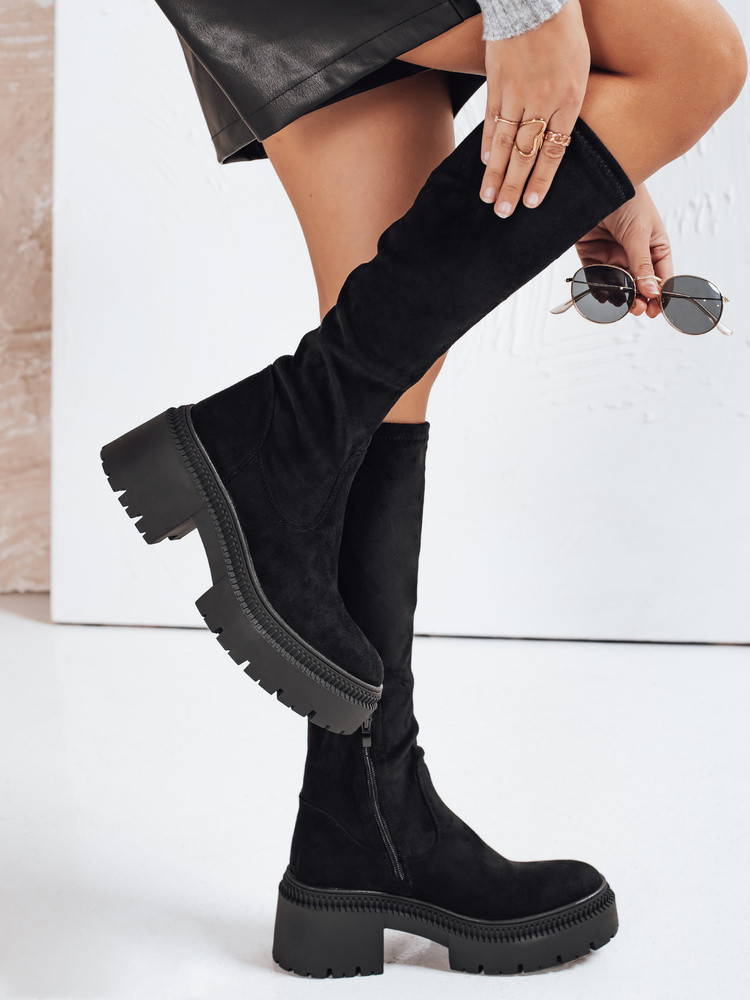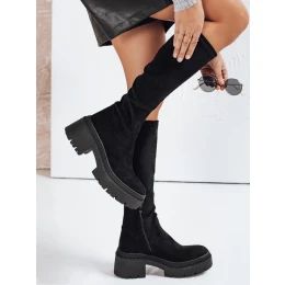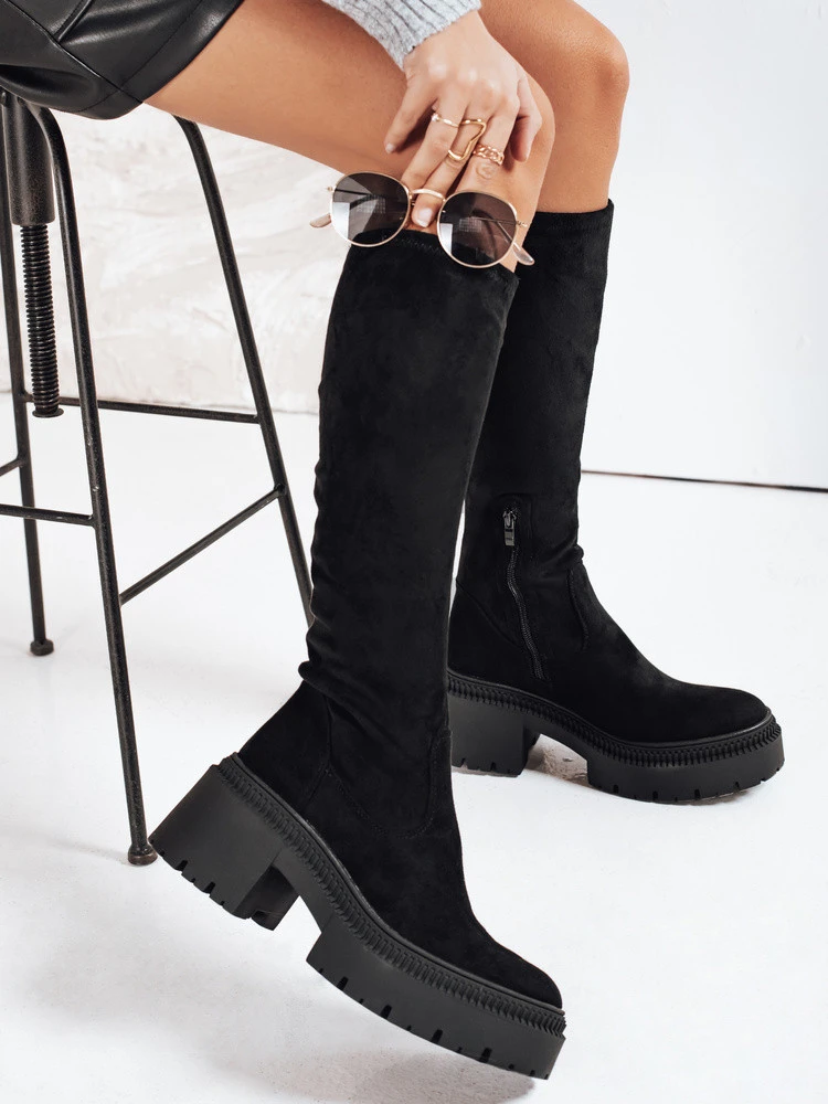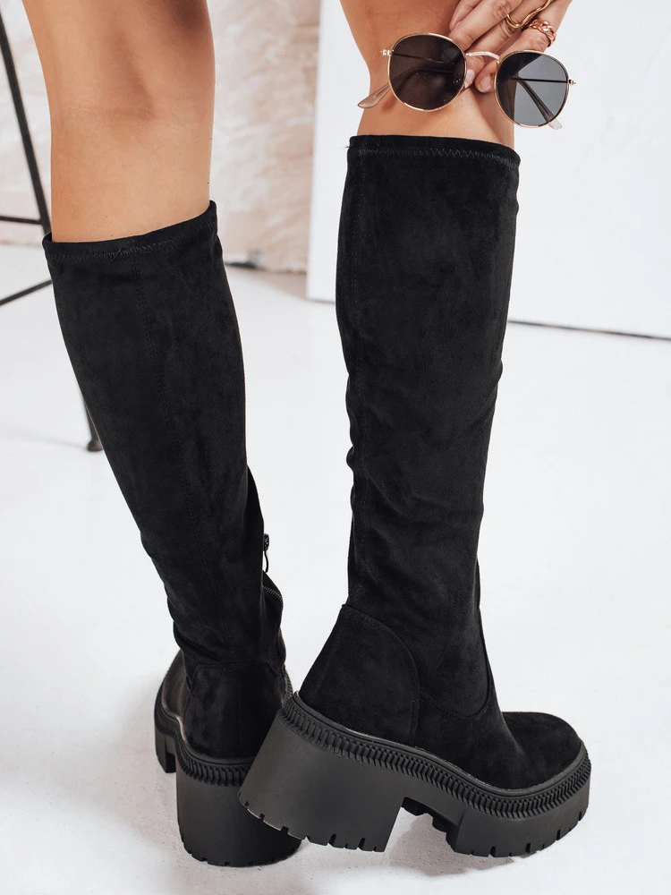 Dámské semišové kozačky na silné podrážce černé Dstreet ZY1210