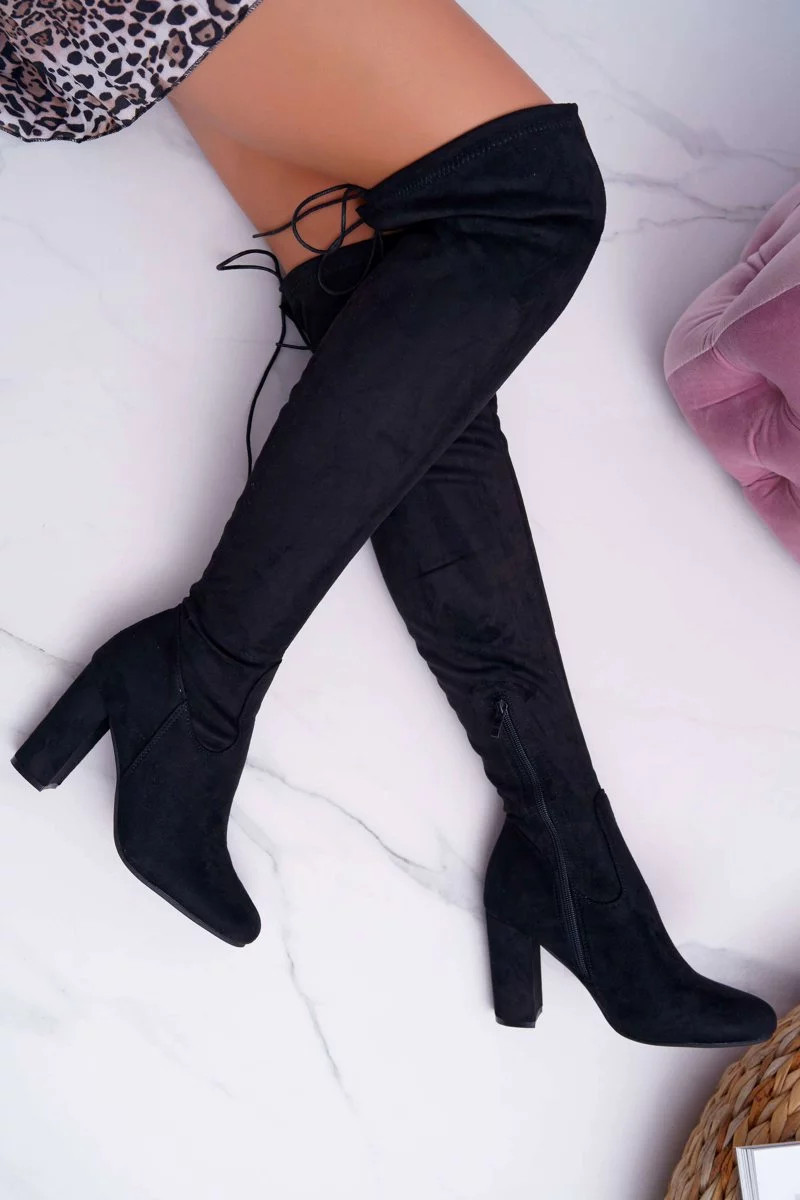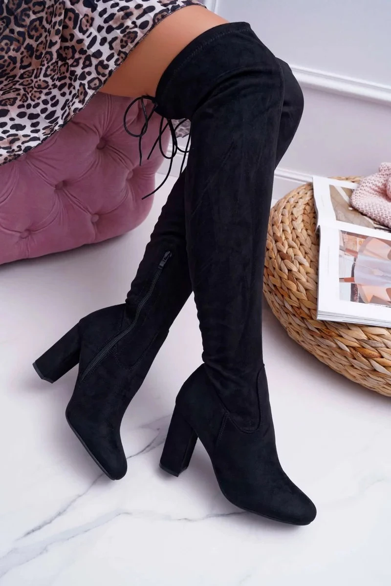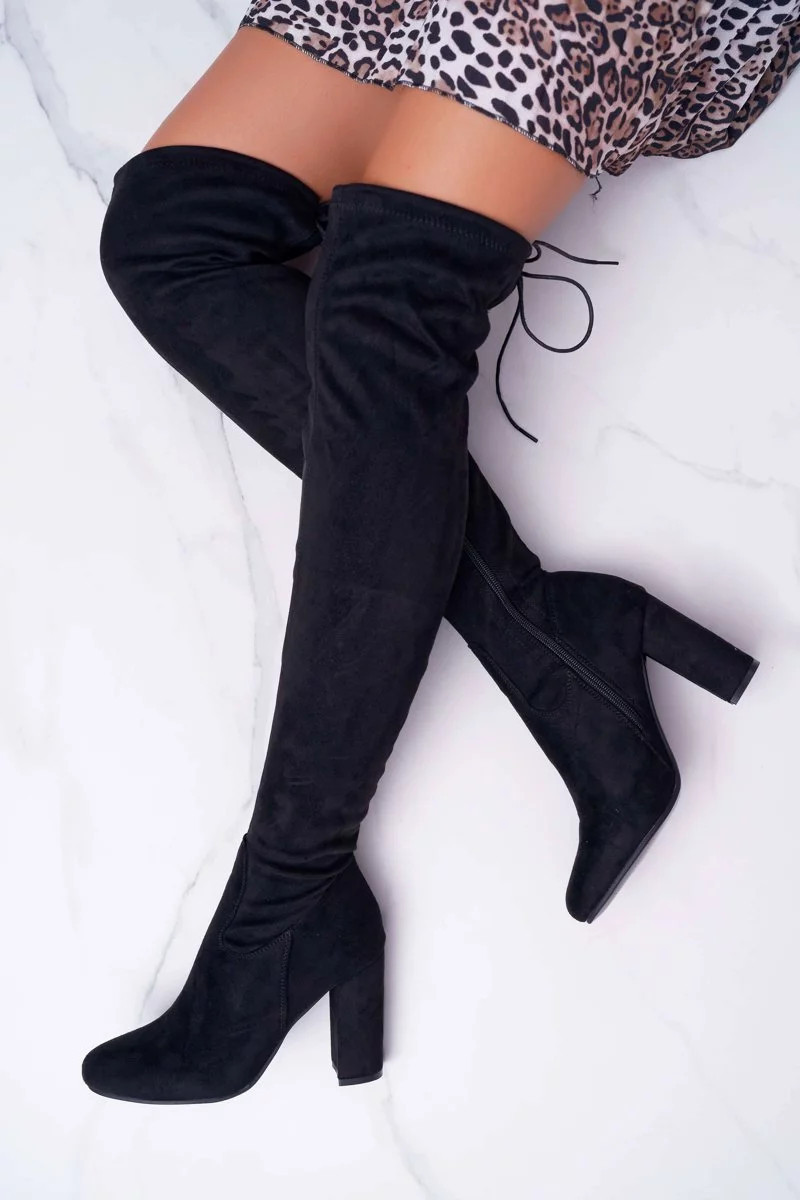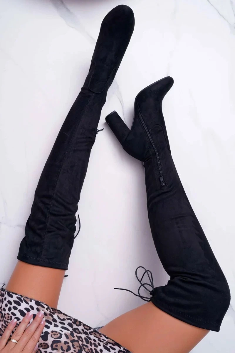 Dámské semišové kozačky na vysokém podpatku Černá Xamarin
