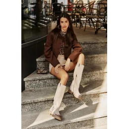 Dámské kozačky z přírodní semiše jsou kombinací elegance a pohodlí. Umístěné na plochém podpatku, zajišťují celodenní komfort nošení. Svršek sahá nad koleno, což přidává na stylu a skvěle se kombinuje s různými outfity. Zaoblené špičky jim dodávají jemný vzhled. Model bez zapínání s praktickým zipem usnadňuje obouvání, zatímco ozdobné pásky na svršku dodávají charakter. Ideální na každodenní nošení i na výjimečné příležitosti, tyto kozačky budou dokonalým doplněním vašeho šatníku! Při výběru velikosti se řiďte tabulkou velikostí.