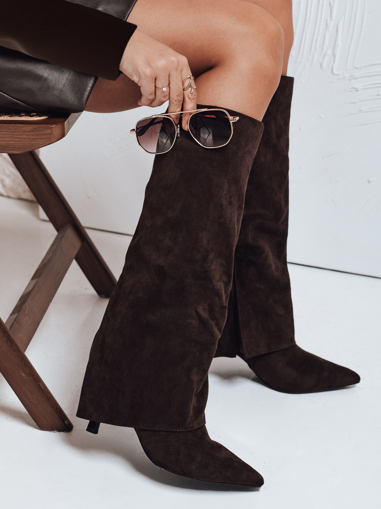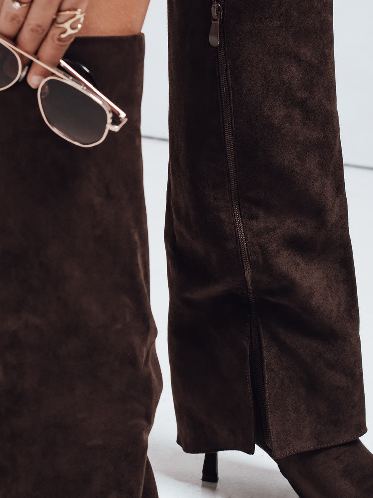 Dámské semišové kozačky s širokým svrškem hnědé Dstreet ZY1043