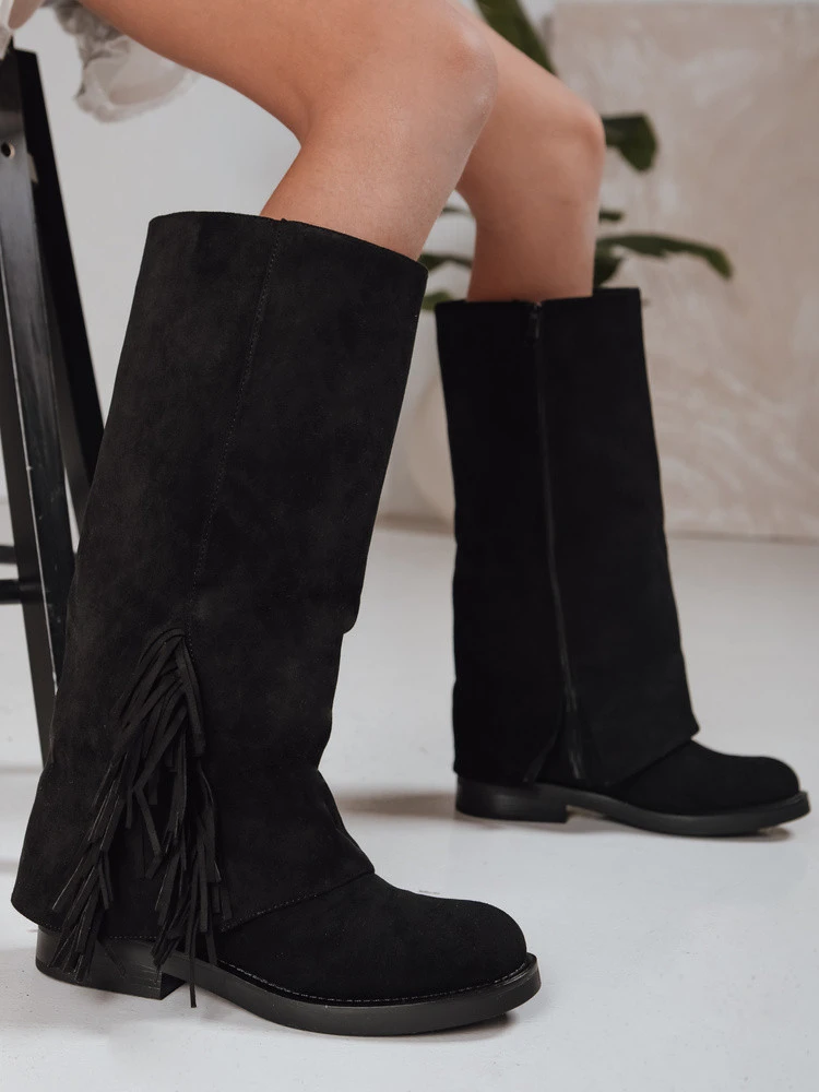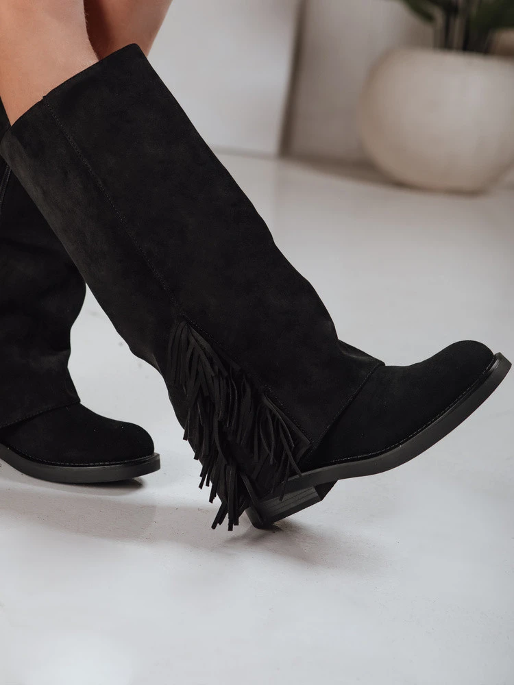 Dámské semišové kozačky s třásněmi černé FashionStreet ZY1268