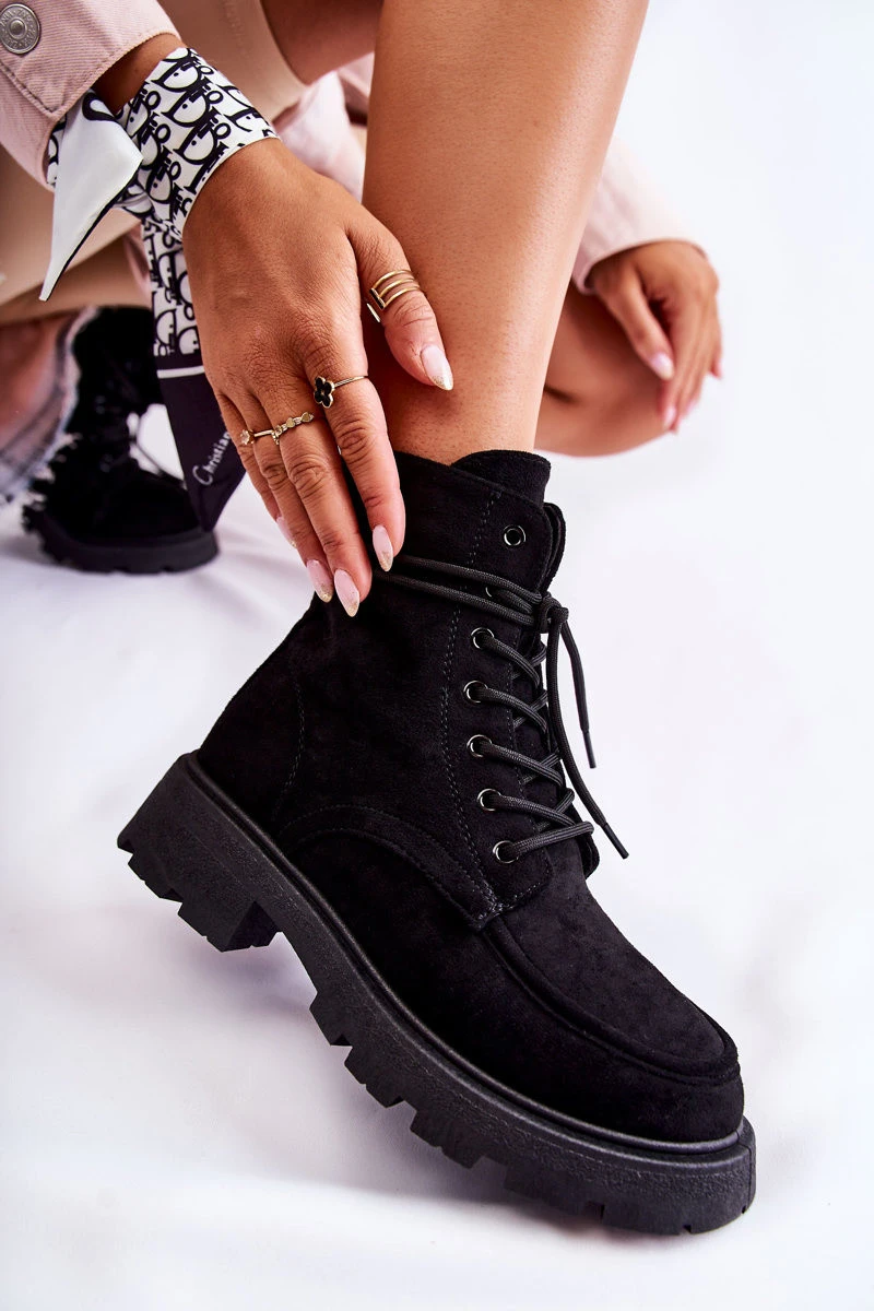 Dámské semišové kozačky zavazované Černá model 21593395 - Boto