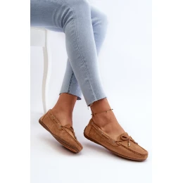 Dámské, klasické mokasíny byly vyrobeny z eko semiše. Tento model má na přední straně ozdobnou mašličku a procházející se přes strany šněrování. Mokasíny jsou umístěny na protiskluzové podrážce. Měkká vložka z eko kůže zajistí pohodlí při používání obuvi. Navíc je jemně perforovaná. Určitě byste je měli mít ve své obuvní sbírce! Při výběru velikosti se řiďte tabulkou velikostí.