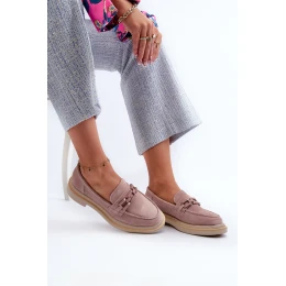 Dámské semišové mokasíny na ploché podrážce s ozdobou D&A TW101 Špinavě růžové