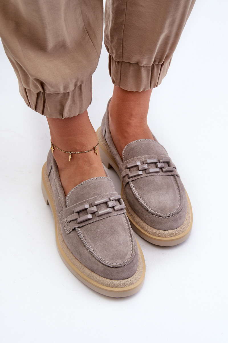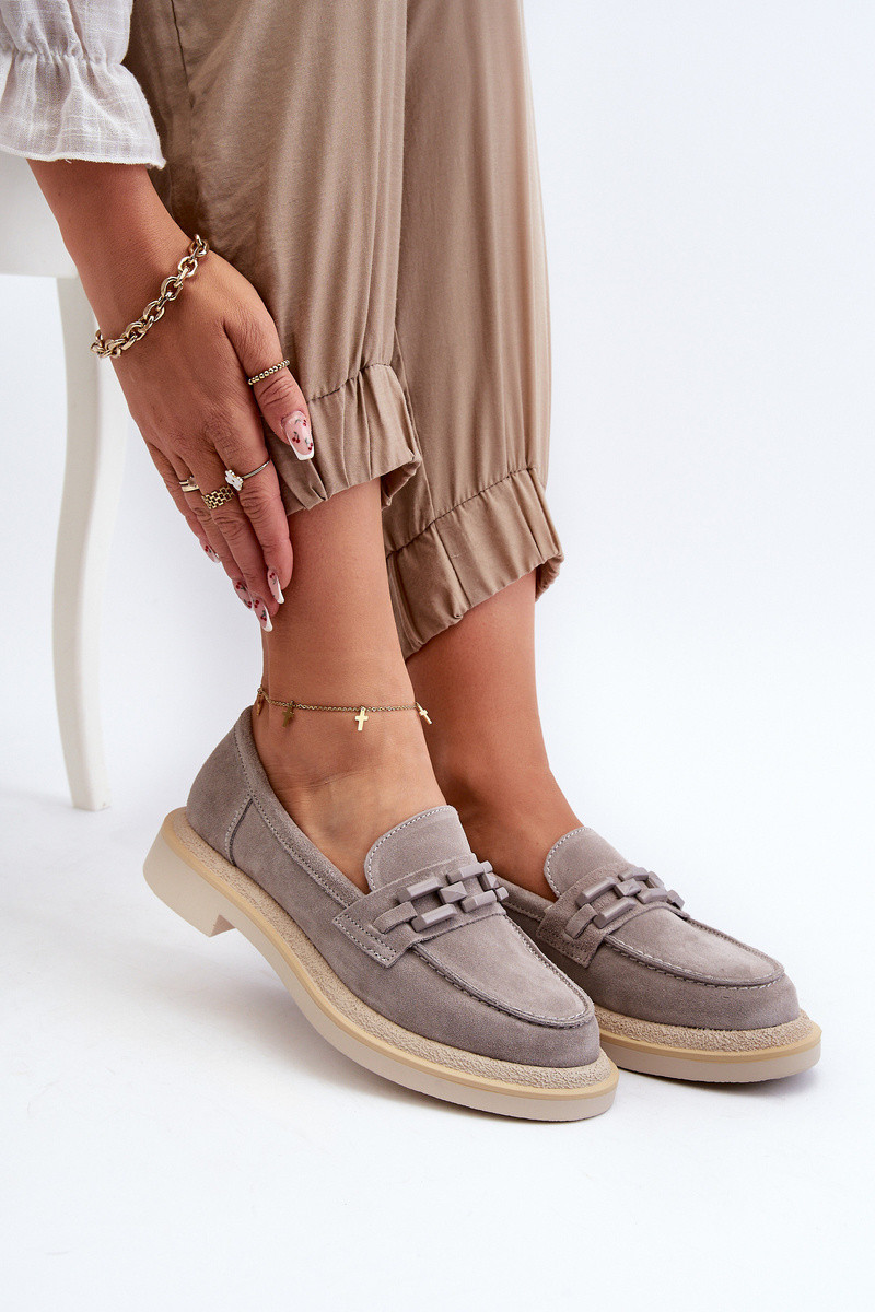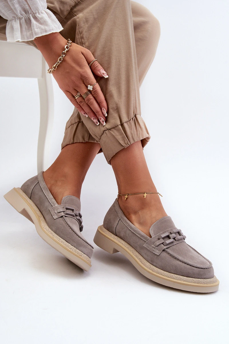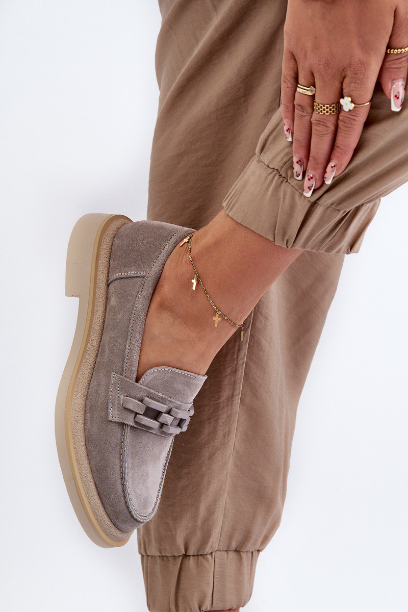 Dámské semišové mokasíny na plochém podpatku s ozdobou D&A TW101 Šedé