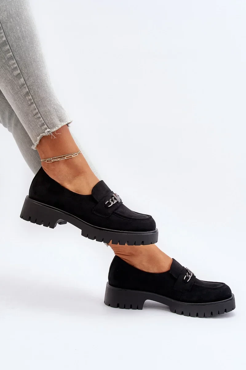 Dámské semišové mokasíny s ozdobou, černá, Loraleima