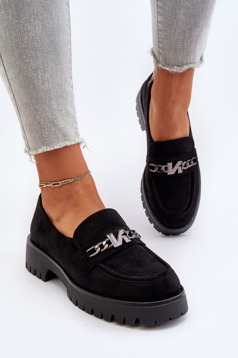 Dámské semišové mokasíny s ozdobou černé Loraleima