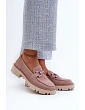 Dámské mokasíny vyrobené z přírodního semiše. Umístěné na ploché podrážce. Dalším ozdobným prvkem vpředu získávají výjimečný šarm, což z nich činí originální doplněk ke každému outfitu. Ať už jdete na setkání s přáteli nebo na formálnější událost, tyto mokasíny budou skvělým doplňkem vašeho looku a dodají mu špetku jemné elegance. Při výběru velikosti se řiďte tabulkou velikostí.