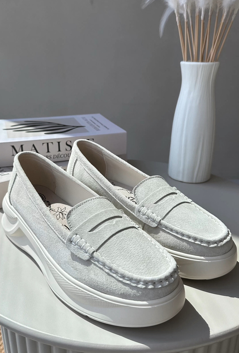 Dámské mokasíny vyrobené z přírodního semiše. Umístěné na platformě a lehkém podpatku. Zaoblené špičky. Ideální pro různé stylizace, tyto mokasíny spojují eleganci a pohodlí. Určitě byste je měla mít ve svém šatníku! Při výběru velikosti se řiďte tabulkou velikostí.