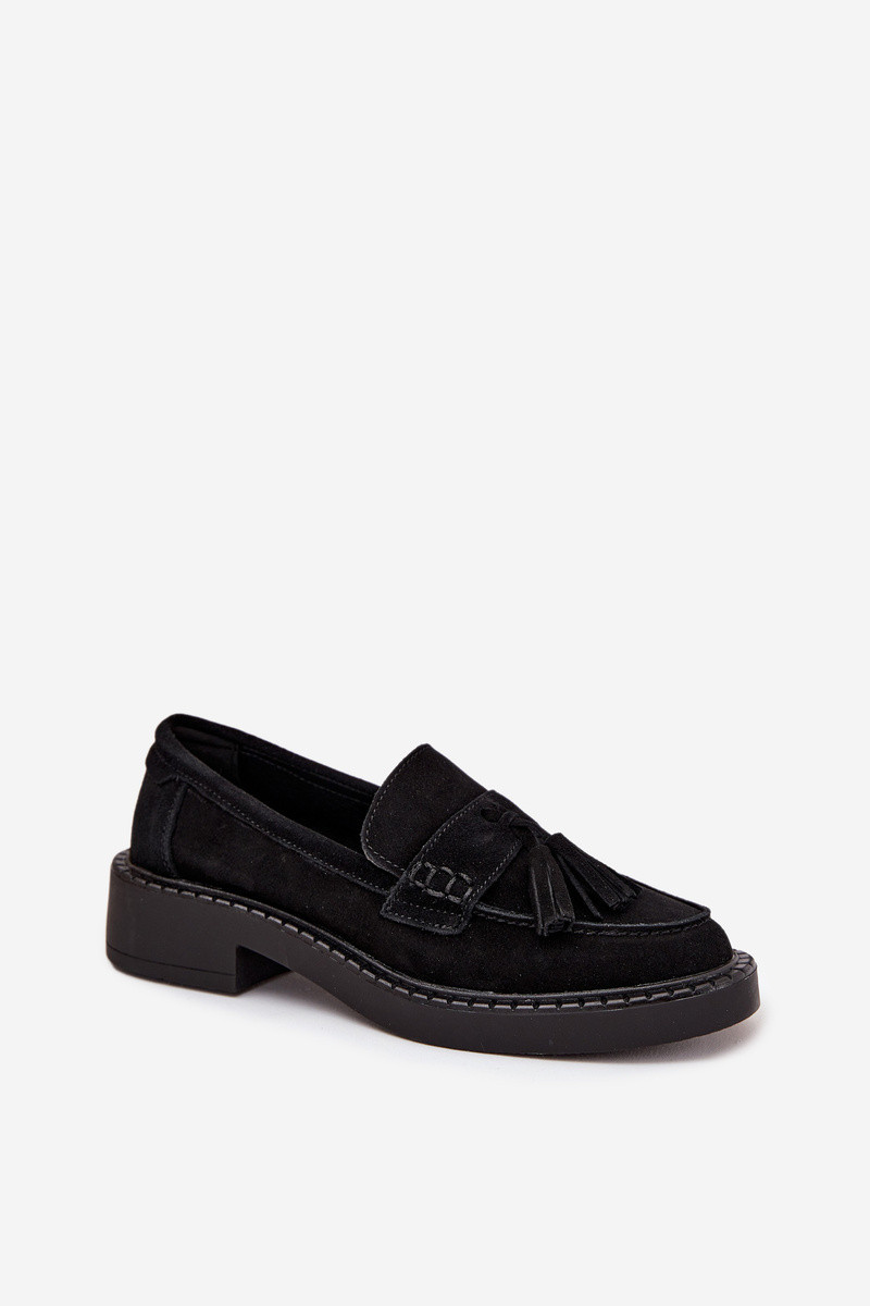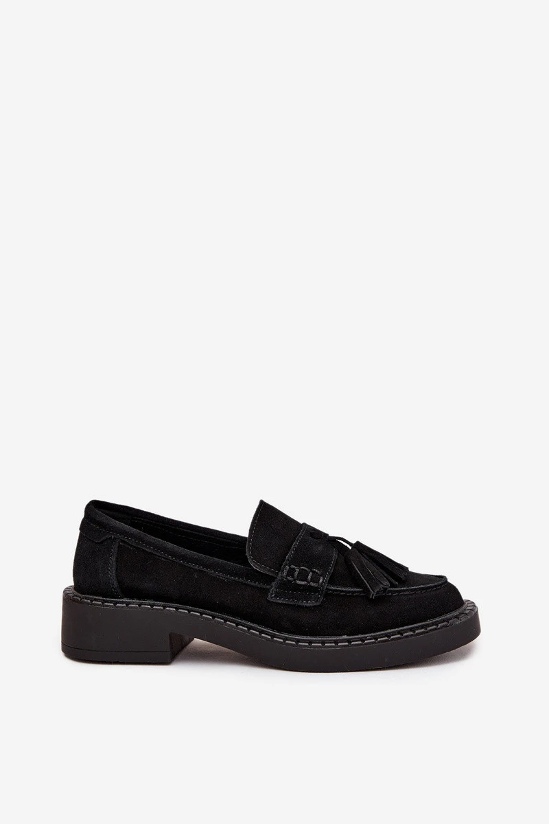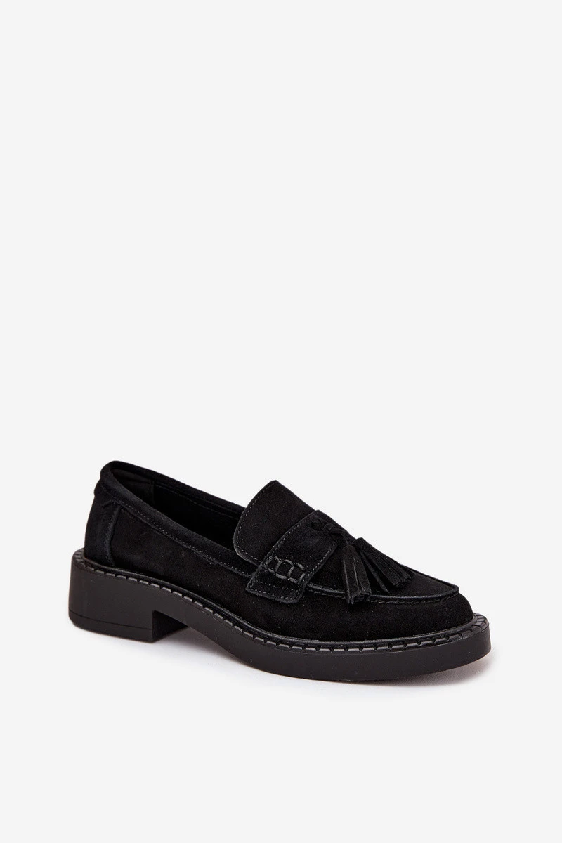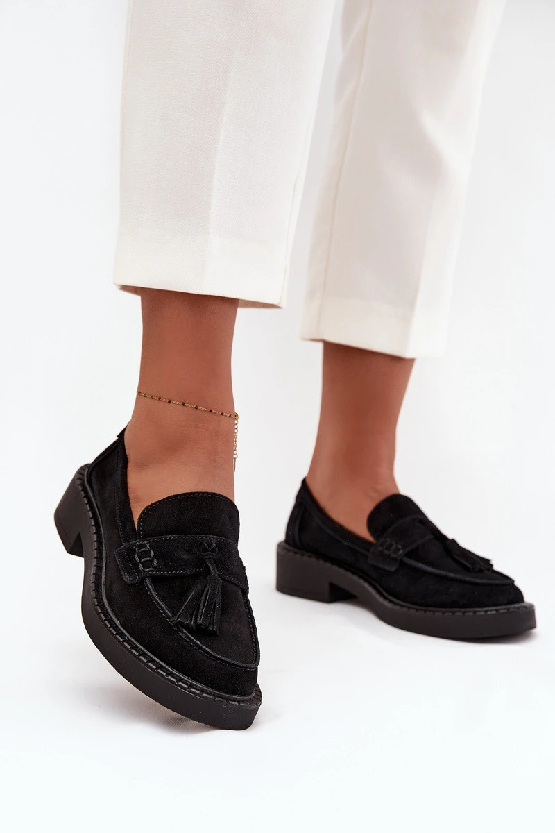 Dámské semišové mokasyny s třásněmi D&A TW107 černé