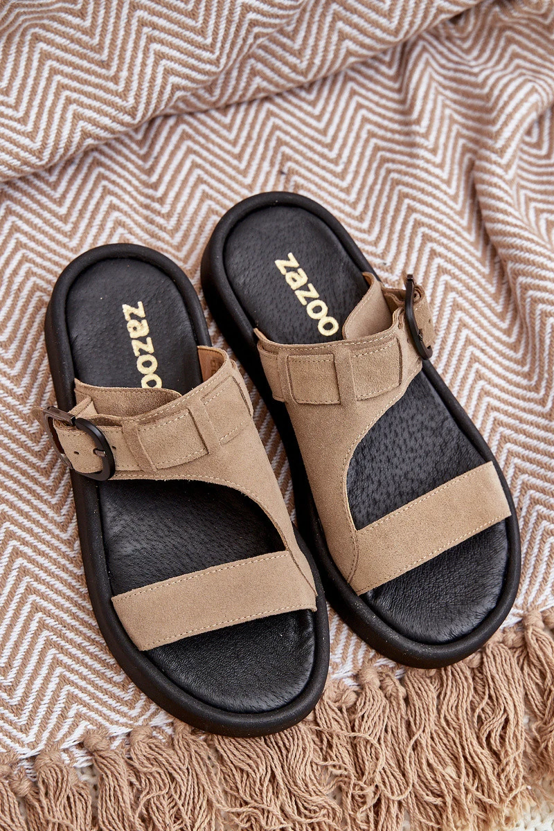 Dámské Semišové Pantofle Na Platformě Béžové Zazoo 3024