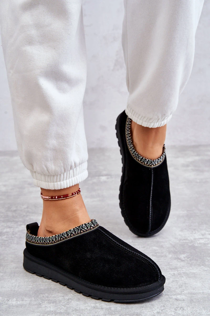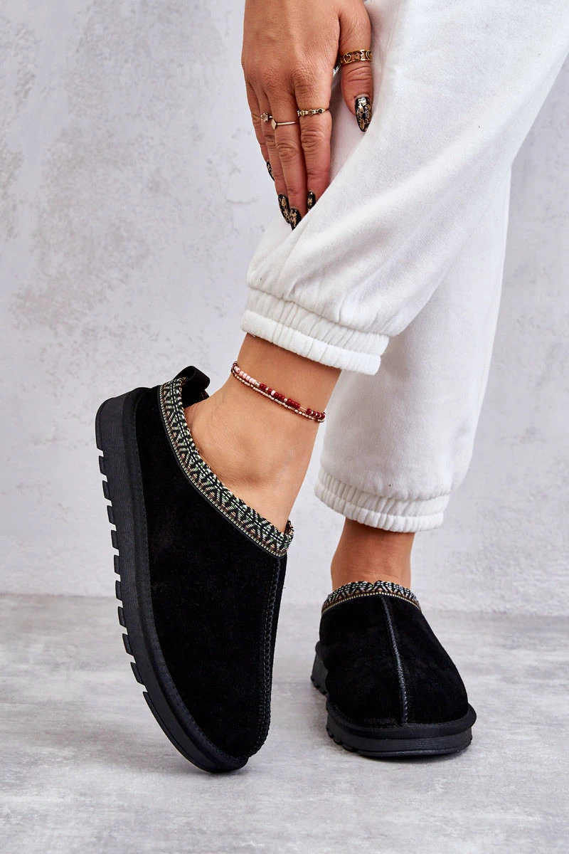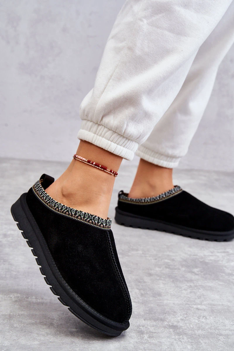Tyto nazouvací pantofle jsou perfektní volbou pro chladné dny doma! Vyrobeno z vysoce kvalitní přírodní kůže s dodatečným zdobením na svršku. Pantofle postavené na masivní platformě, s protiskluzovou podrážkou. Pantofle jsou uvnitř zateplené hustou kožešinou příjemnou na dotek. Při výběru velikosti se řiďte tabulkou velikostí.