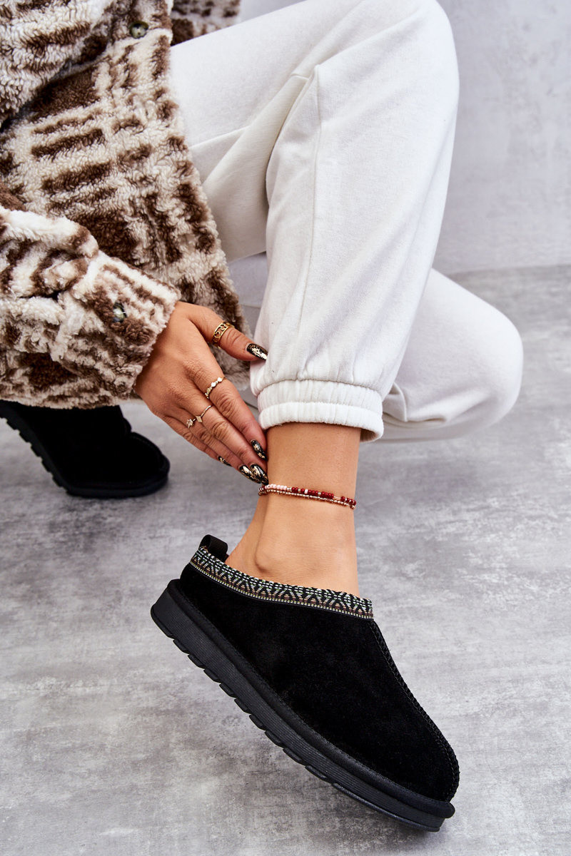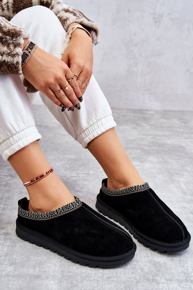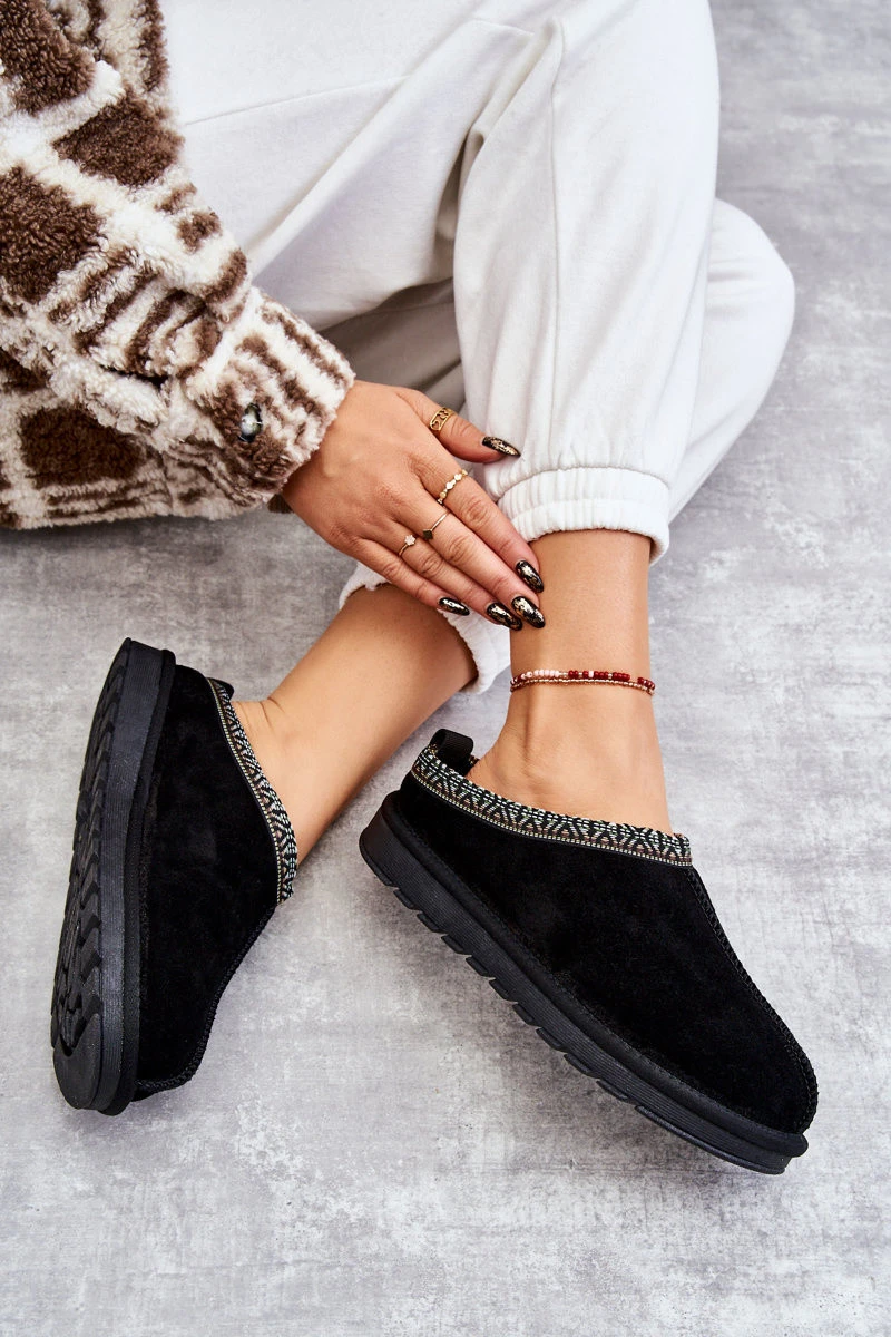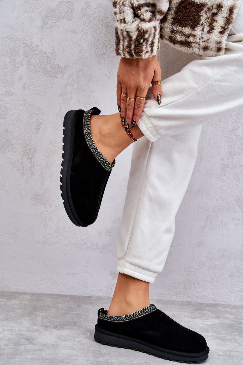 Tyto nazouvací pantofle jsou perfektní volbou pro chladné dny doma! Vyrobeno z vysoce kvalitní přírodní kůže s dodatečným zdobením na svršku. Pantofle postavené na masivní platformě, s protiskluzovou podrážkou. Pantofle jsou uvnitř zateplené hustou kožešinou příjemnou na dotek. Při výběru velikosti se řiďte tabulkou velikostí.