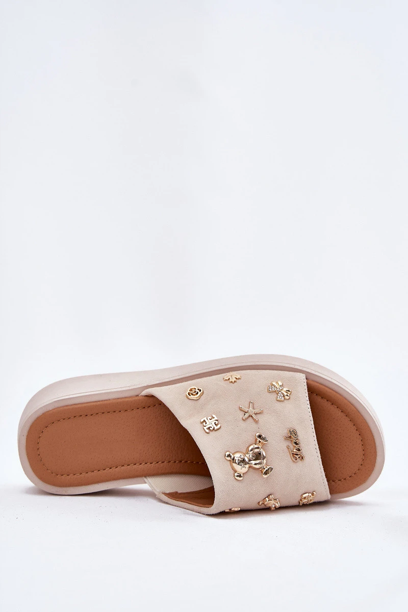 Dámské Semišové Pantofle S Připínáčky Vinceza 66741 Béžové
