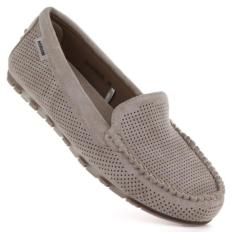 Dámské semišové polobotky khaki mokasíny model 22097293 - Potocki