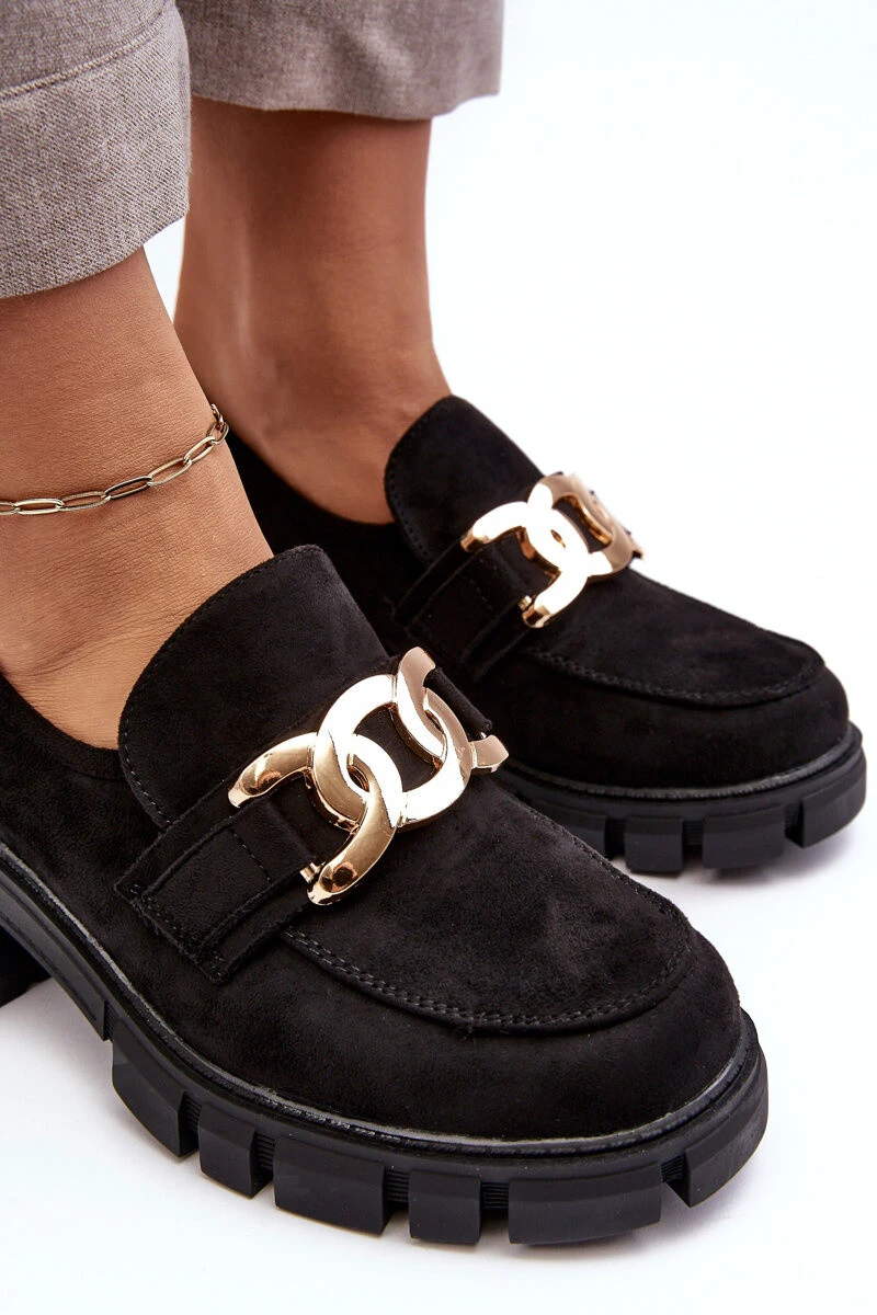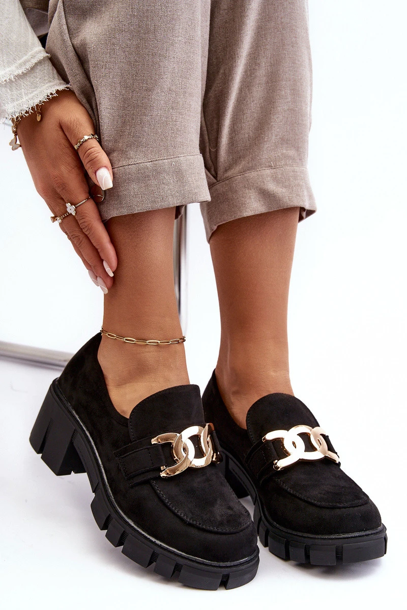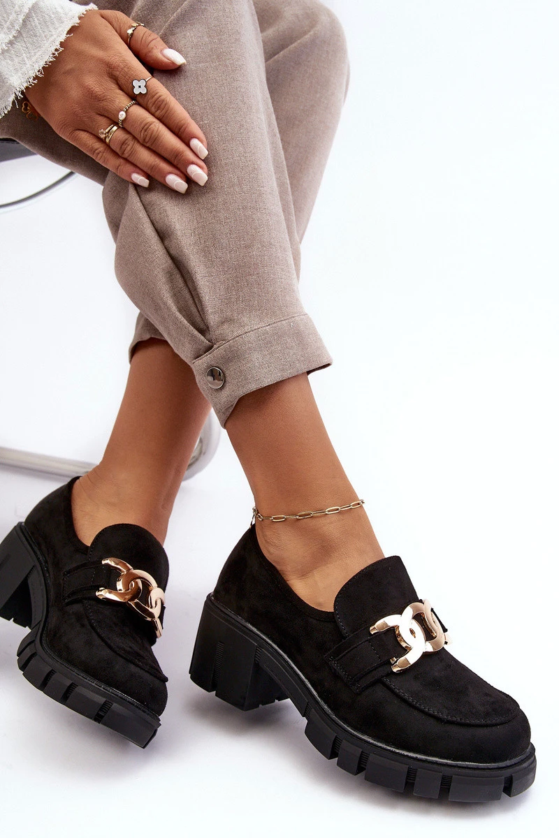 Dámské polobotky vyrobené z eko semiše. Osazeny na masivním, nízkém podpatku. Na přední straně zlatá ozdoba z umělého materiálu. Špička zaoblená. Vyztužený patník. Skvělý model pro mnoho stylů! Pohodlné a zároveň moderní. Musíš je mít! Při výběru velikosti se řiďte tabulkou velikostí.