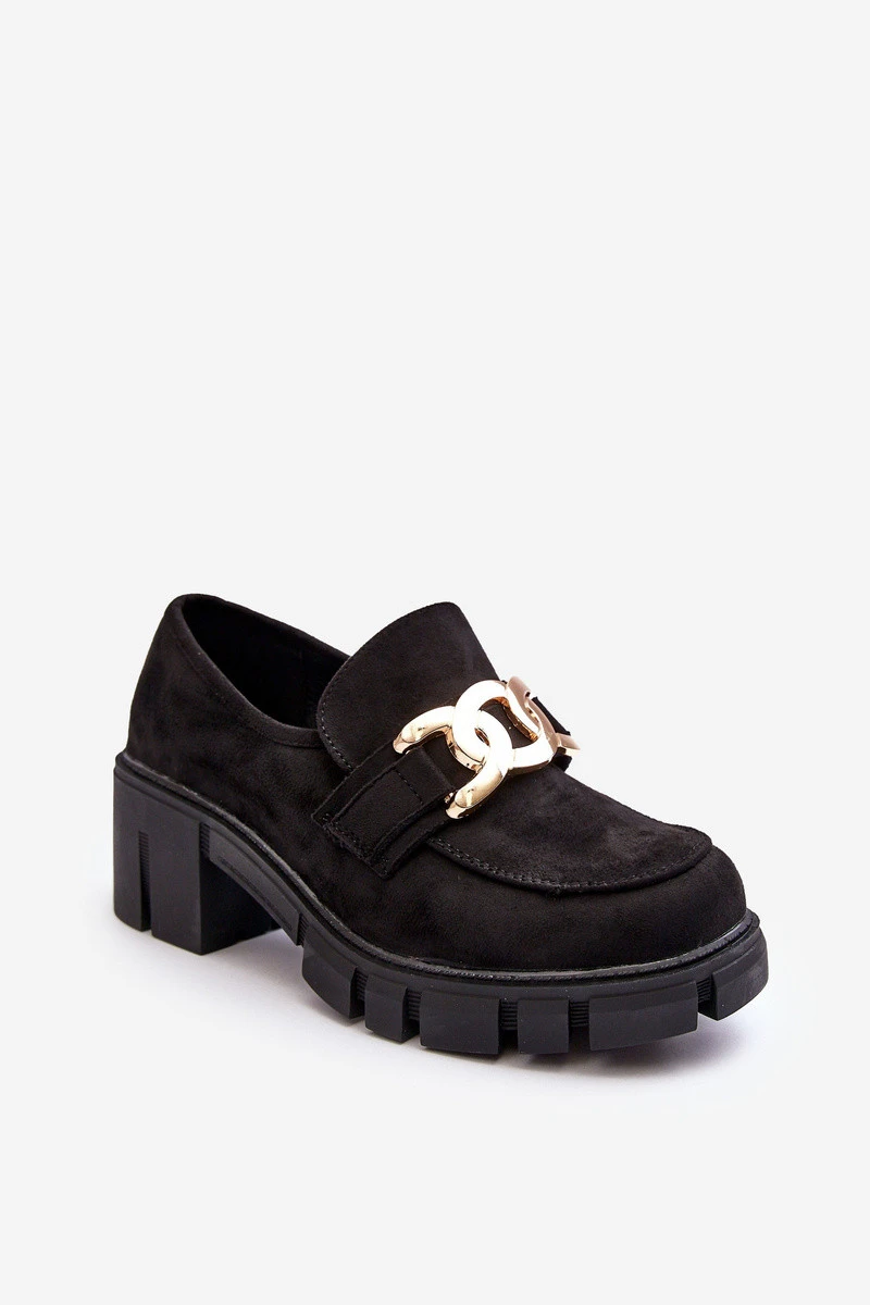 Dámské polobotky vyrobené z eko semiše. Osazeny na masivním, nízkém podpatku. Na přední straně zlatá ozdoba z umělého materiálu. Špička zaoblená. Vyztužený patník. Skvělý model pro mnoho stylů! Pohodlné a zároveň moderní. Musíš je mít! Při výběru velikosti se řiďte tabulkou velikostí.