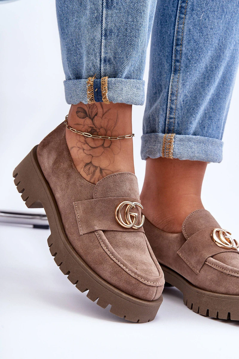 Dámské semišové polobotky s ozdobou tmavě béžová Rosefalls