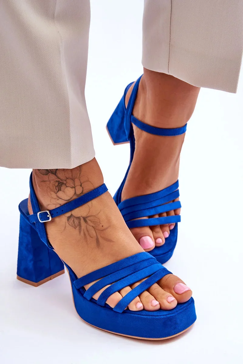 Módní dámské sandály na masivním sloupku a jemné platformě. Na přední straně mají pruhy. Svršek je vyroben z ekologického semiše. Měkká stélka z eko kůže zajistí pohodlí při používání. Sandály mají nastavitelný pásek zapínaný kolem kotníku na přezku. Tento model je HIT, tak už na nic nečekejte a kupte si ho ještě dnes! Při výběru velikosti se řiďte tabulkou velikostí.