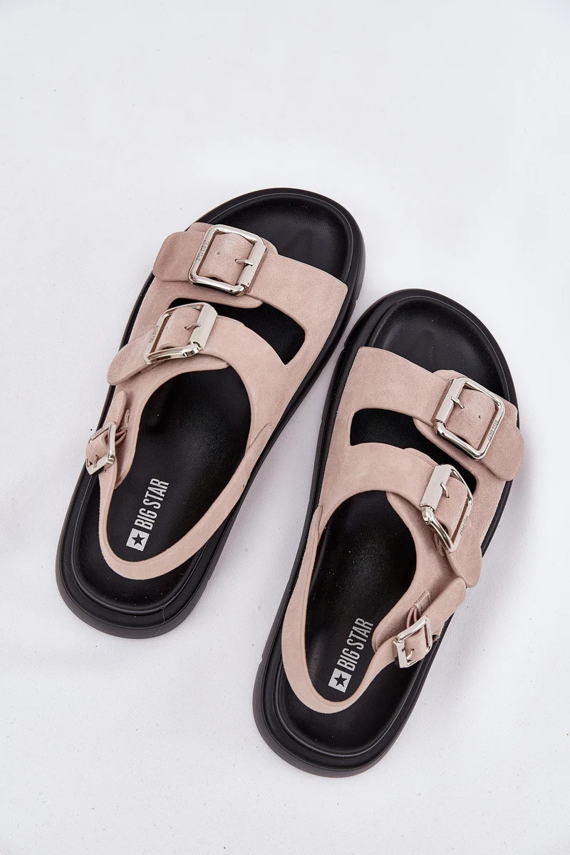 Dámské semišové sandály s přezkami Big Star – světle růžové