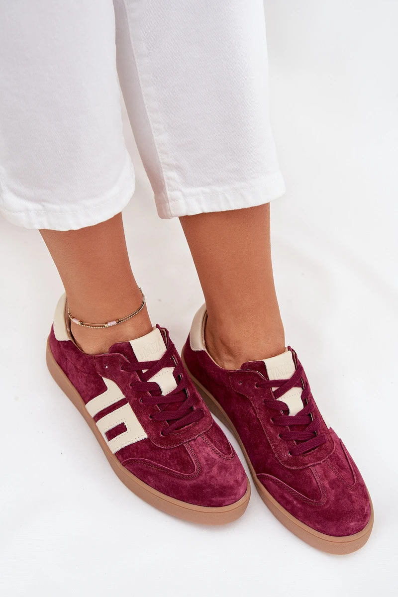 Dámské semišové sneakersy model 21704973 bordové - VINCEZA