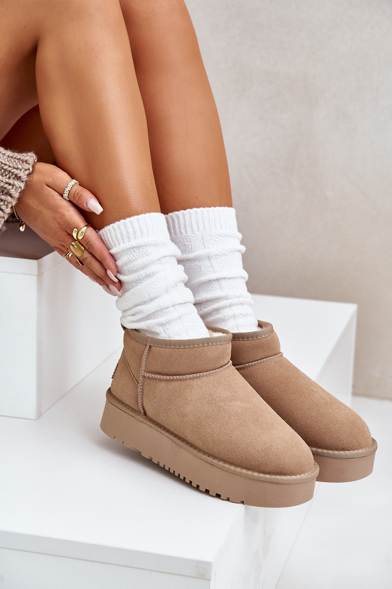 Dámské semišové sněhule na platformě béžové model 21670427 - Boto