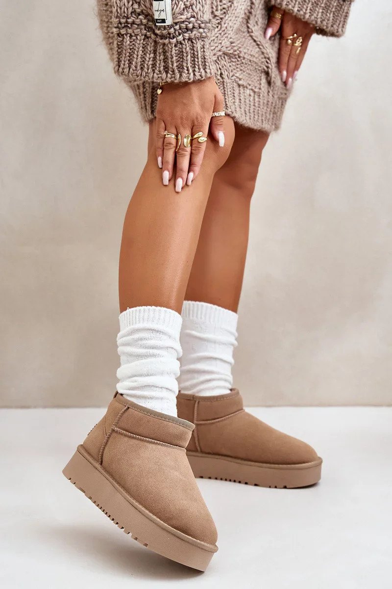 Dámské Semišové Sněhule Na Platformě Béžové Nereviana
