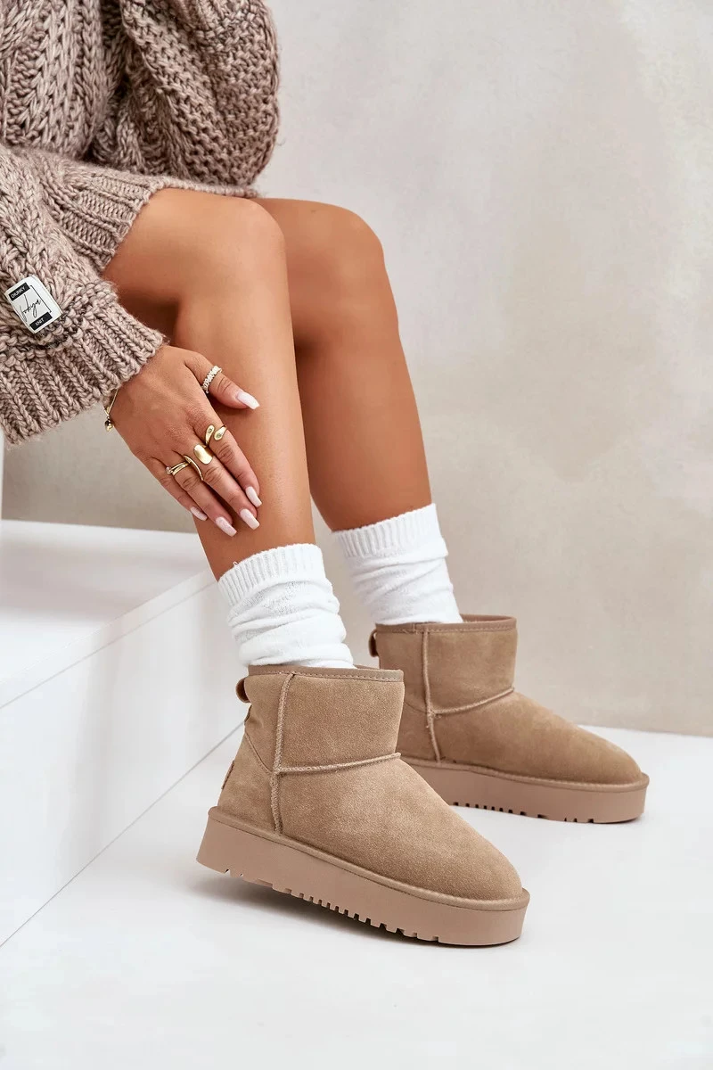 Dámské Semišové Sněhule Na Platformě Nad Kotníky Béžové Rianaella