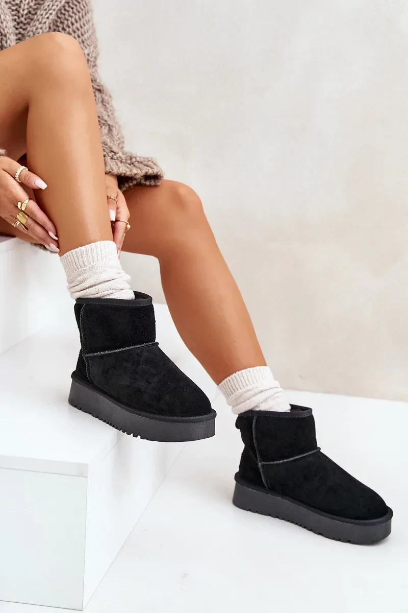 Dámské Semišové Sněhule Na Platformě Nad Kotníky Černé Rianaella