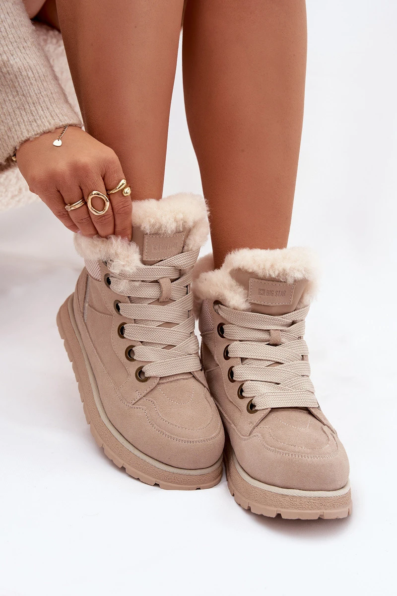 Dámské semišové sněhule – trapery na platformě s kožíškem Big Star – béžové