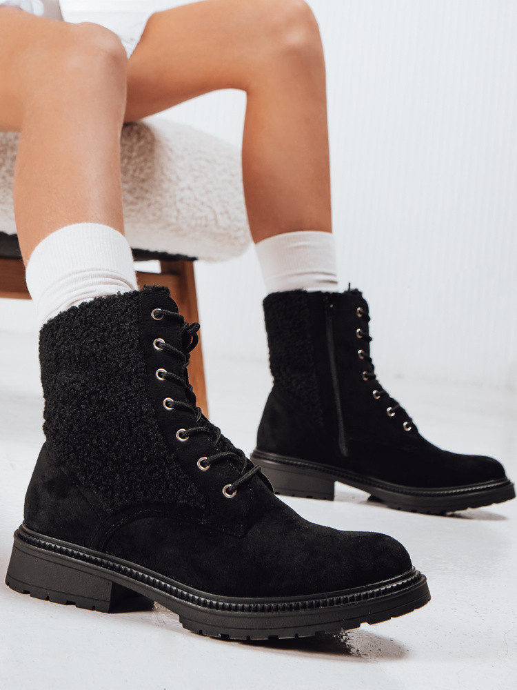 Dámské semišové šněrovací boty černé FashionStreet ZY1231