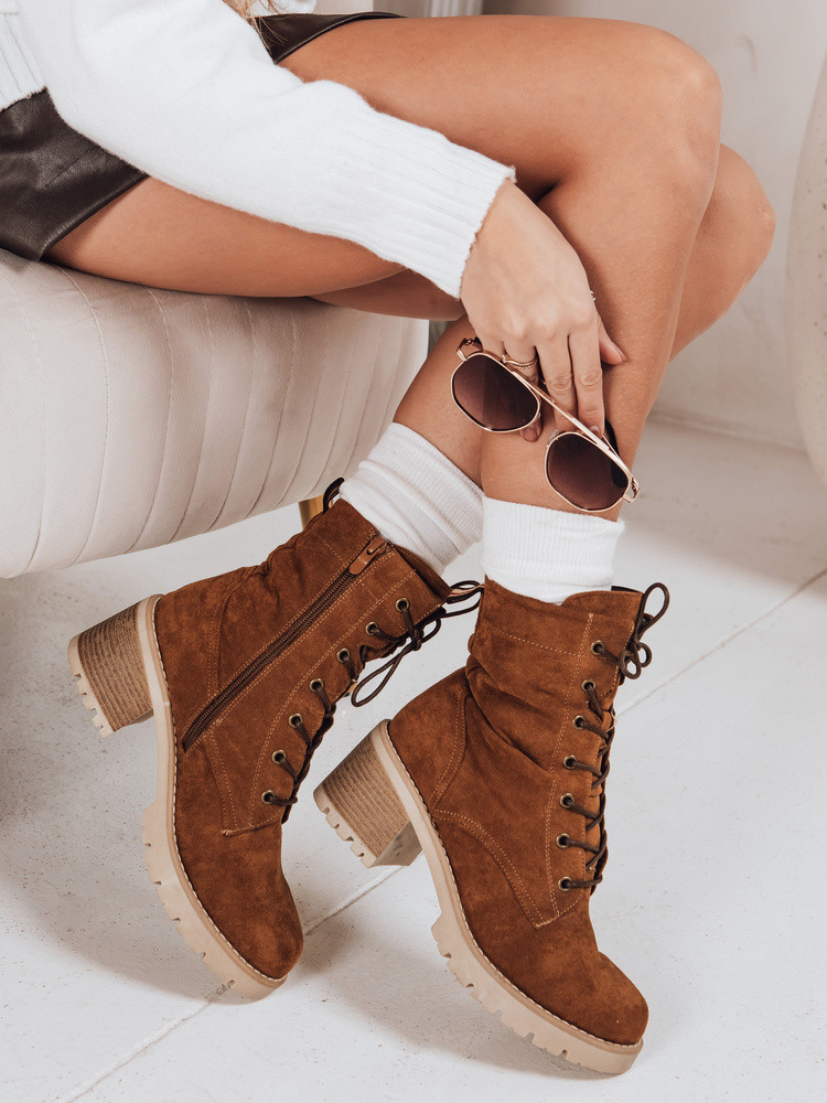 Dámské semišové šněrovací boty velbloudí barvy FashionStreet ZY1236